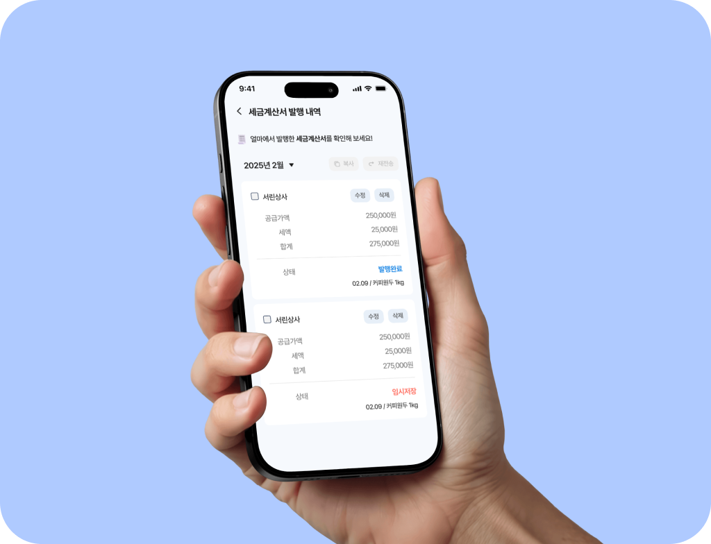 이제는 PC가 없어도 세금계산서 발행이 가능합니다.